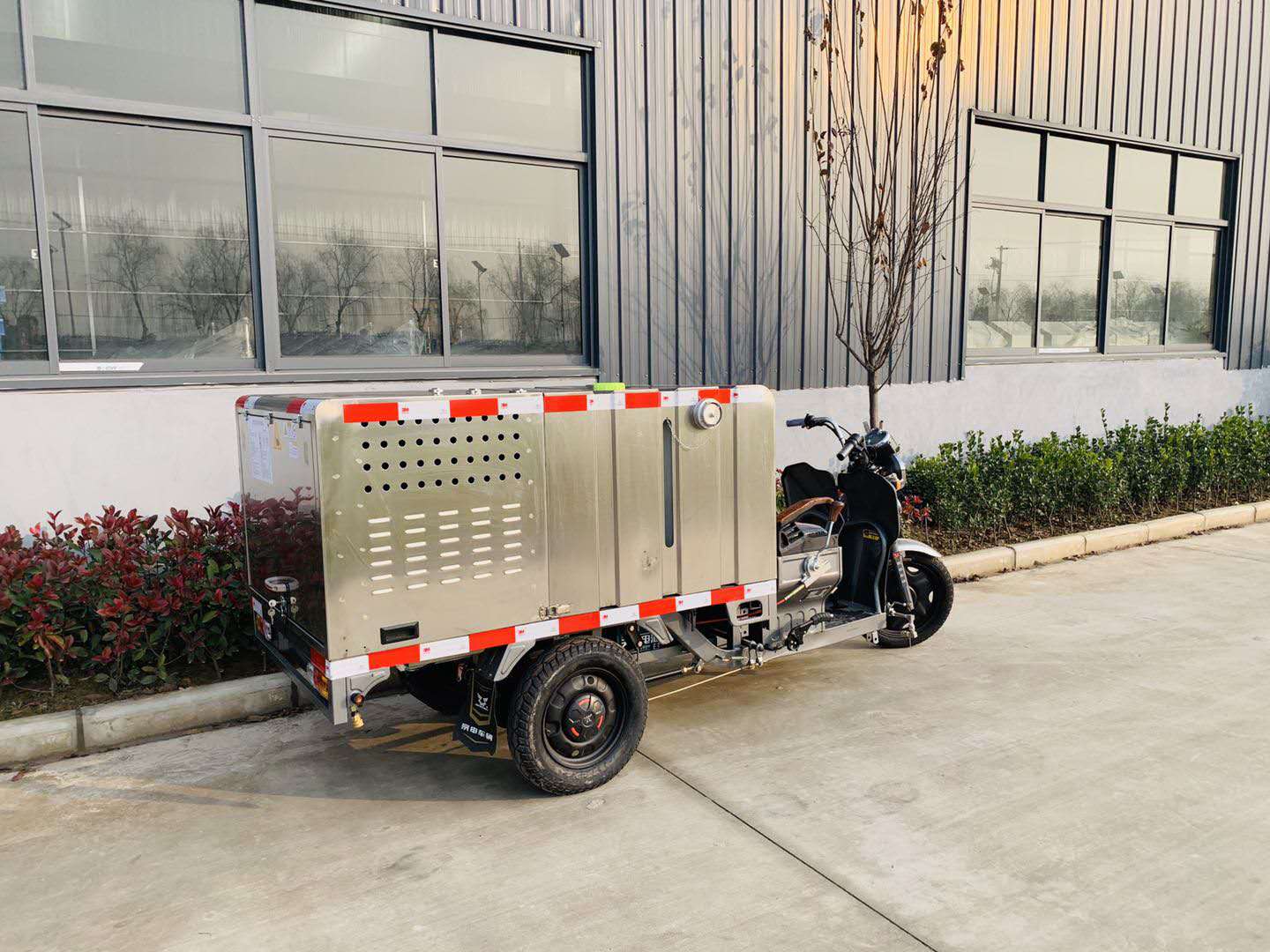 4. 可装载一只240L标准垃圾桶,可以作为路面垃圾收集使用,也可以作为保洁员巡检使用;