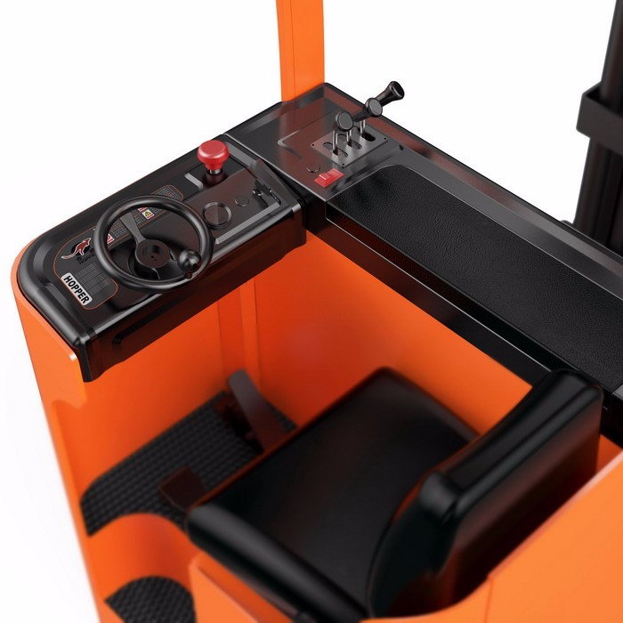 EPS电子转向系统配以小直径方向盘,转向操作舒适自如;CURTIS控制器、ALBRIGHT 接触器、AMP防水电源接插件;LED冷光源大灯,节能适用,并配有广角后视镜;独特的驱动减振技术,叉车通过性能更优越;标配侧拉式电池快换装置,可适应叉车连续作业;带扶手可调节的座椅,驾驶更舒适;高频MOS管集成控制系统,CAN-BUS总线技术;优化的功率输出与电机匹配,提高连续作业时间;弯道自动减速。